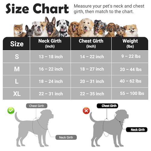 [Perfect Fit & Easy Sizing]: Measure your pet’s neck and chest, then consult our clear size chart for the ideal match (S, M, L). This dog harness features adjustable straps at four key points, allowing you to customize a secure and comfortable fit for small, medium, and large breed dogs and puppy, ensuring no chafing.