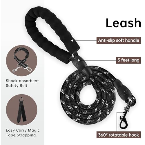 ≡ PERFECT HARNESS SET ≡ Our dog harness set includes 1 professional dog leash & 1 retractable seatbelt & 1 storage strap (easy to store the harness and the leash).The thoughtfully considered combination can meet various needs, and each carefully selected accessories protect the safety of the dog
