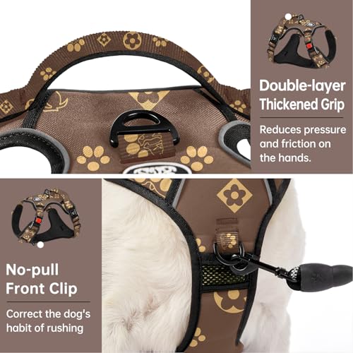 IVY&LANE No Pull Dog Harness with Leash Set, Reflective No Choke Pet Vest,Adjustable Oxford Dog Vest Harness with Easy Control Handle for Medium Dogs (Dark Brown,M)