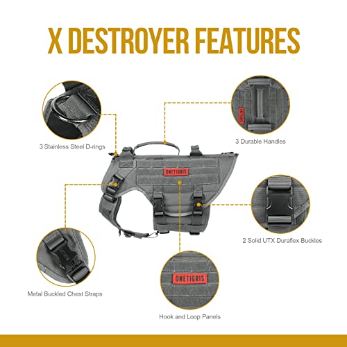 OneTigris Large Tactical Dog Harness – No Pulling Adjustable Dog Vest with Heavy Duty Handle and 2X Quick-Release Metal Buckles