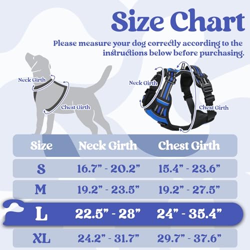 rabbitgoo Dog Harnesses for Large Dogs, No Pull Pet Harness with 3 Buckles, Adjustable Soft Padded Vest with Instant Control Handle, Easy Walking Reflective Pet Vest, Blue, L