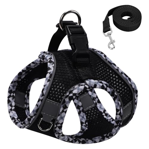 Small Dog Harness and Leash Set, No Pull Adjustable Step in Puppy Reflective Breathable Mesh Pet Harnesses Soft Padded Vest for Dogs Easy to Put on (Black-XXS)