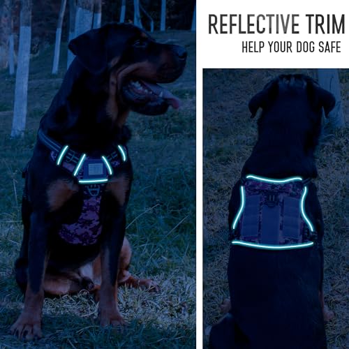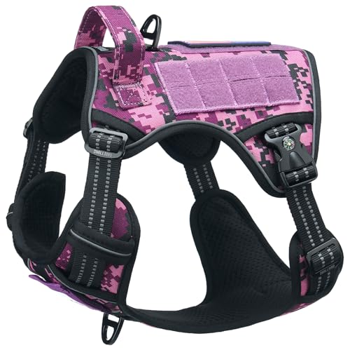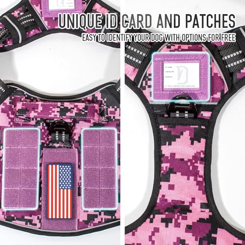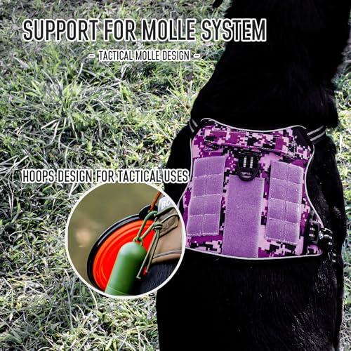 Tactical Dog Harness for Medium Large Breeds, Heavy Duty Dog Harness with ID Card, Reflective Hiking Harness for Training Easy Control Dog Vest with Handle Purple Camo