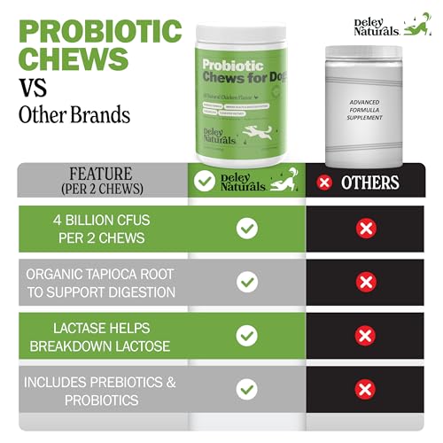Deley Naturals Probiotics for Dogs – Dog Probiotics Chewable with 6 Digestive Enzymes & 4 Billion CFUs – Probiotic Chews for Dogs Gut Health Diarrhea & Digestion – Digestive Balance Dog Supplements