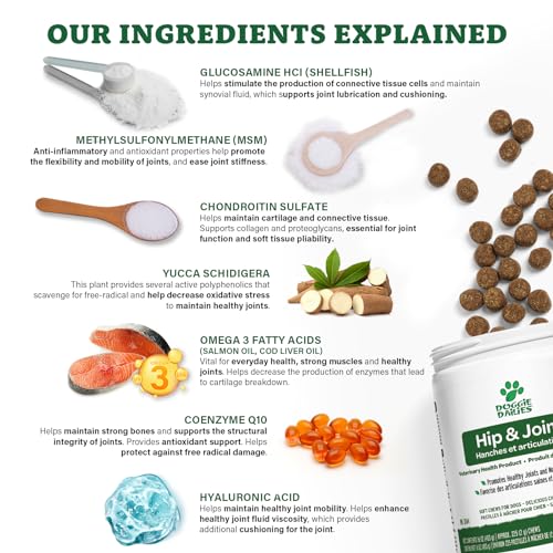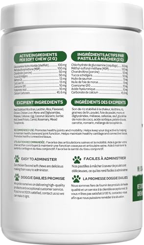 Doggie Dailies Glucosamine for Dogs – 225 Chews – Joint Supplement for Dogs of All Breeds & Sizes – Hip and Joint Supplement for Dogs – Premium Glucosamine and Chondroitin for Dogs