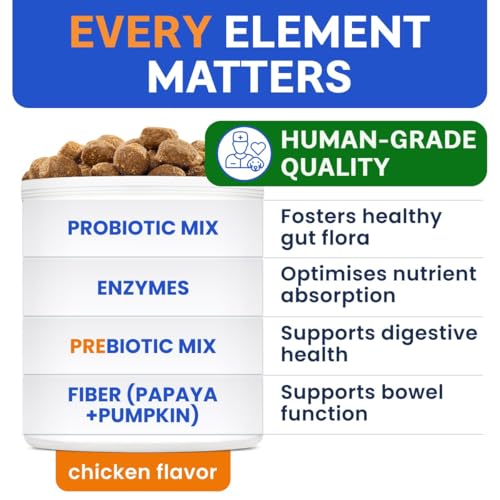 Probiotics for Dogs – Gas, Diarrhea, Allergy, Constipation, Upset Stomach Relief, w/Digestive Enzymes + Prebiotics – Chewable Supplement – Improve Digestion, Immunity – Dog Probiotics Chews – 180Ct