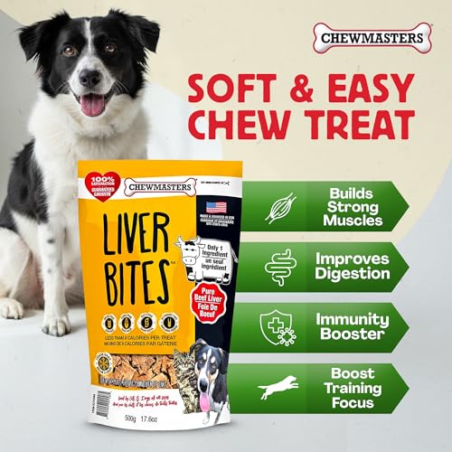 Chewmasters 100% Pure Beef Liver Bites, Healthy Freeze Dried Dog Treats, 17.6 oz, All Natural, Grain Free, High Protein & Zero Additives, Made in USA, Packed with Nutrients and Vitamins