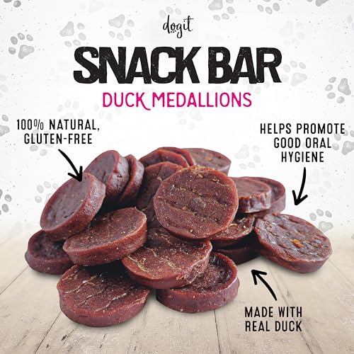 Dogit Snack Bar Duck Medallions Dog Treats – 150g for Large and Medium Dogs, Chews, Gateries Pour Chien, Os Pour Chien