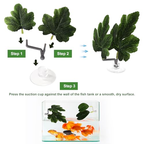 Easy to Install: Just need 3 steps to install. First, insert the fish leaf pad into the holders. Second, put the holders into the suction cups. Third, press the suction cup onto the fish tank wall. (Tip: Please keep fish leaf pads away from the pump or inlet)