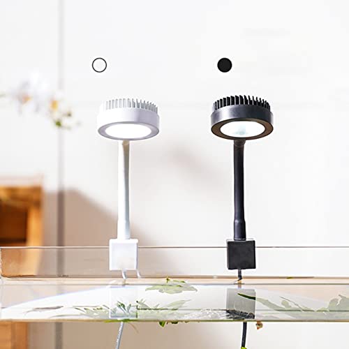 BigTron Full Spectrum Aquarium Light, Small Clip Light for Fish Tank with 2 Blue 10 White LED, 5W Brightness, for 3-5mm Thick (White) (Black)
