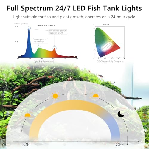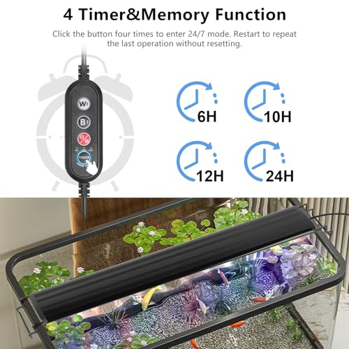 Timing Memory Function: The LED aquarium light can be set to three timers, namely 6 hours/10 hours/12 hours. Click the button four times to enter 24/7 mode. It also has a memory function, and restarting can repeat the last operation without resetting.