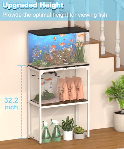 20 Gallon Fish Tank Stand, Upgraded Height Aquarium Stand Table with 2 Tiers Storage Shelf, Metal Reptile Breeder Turtle Terrarium Stand Rack for Home Office, 24″ L x 12″ W x 32.2″ H, White