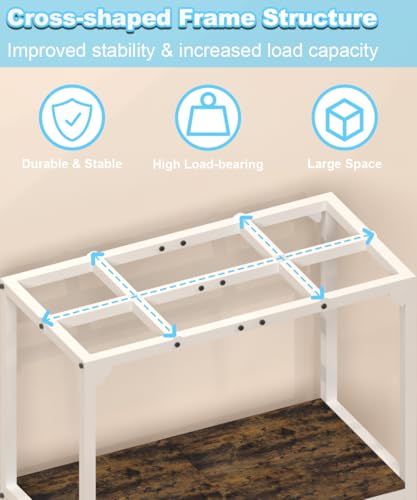 2 Tier Space Design: Maximize vertical space utilization with our 2 tiers fish tank table. The top layer accommodates a 20 gallon terrarium tank, while the middle layer provides additional space for smaller fish tanks, fish food, cleaning tools, and other accessories. This design keeps your fish tank area organized, allowing you to easily access the items you need