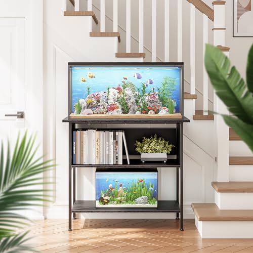 【Heavy Duty Aquarium Stand】Designed for 40 to 50 gallon aquariums (36.6″ L x 18.9″ W); The strong top tier holds up to 660 pounds, safely supporting large fish tanks, turtle tanks, or reptile enclosures; Please verify your tank size to ensure a proper fit