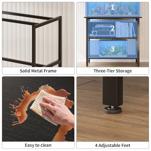 APPLOYN 40-50 Gallon Fish Tank Stand, Aquarium Stand with 3-Tier Storage Shelf, Heavy Duty Metal Frame for Turtle Reptile Terrarium Tank Stand, for Living Room, Office, Black