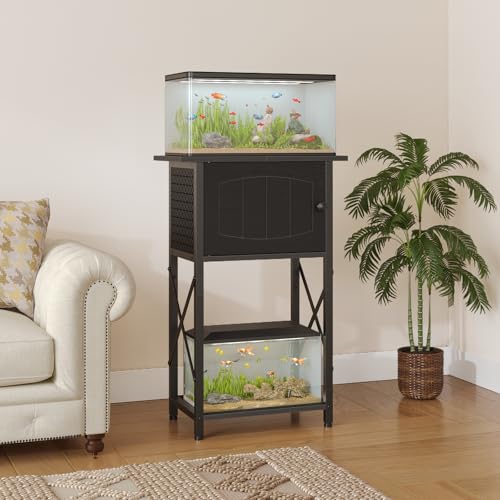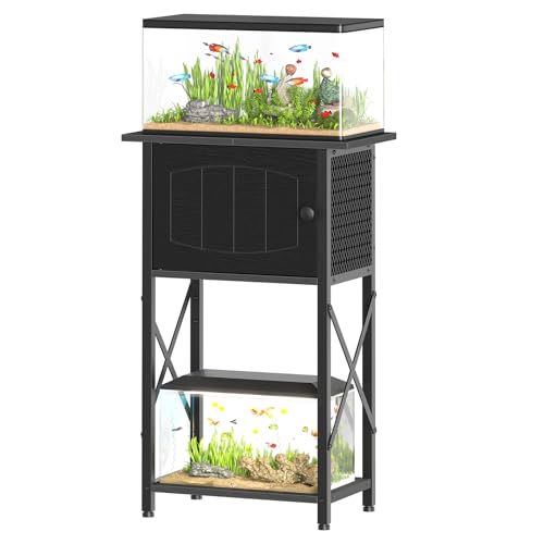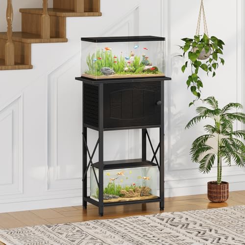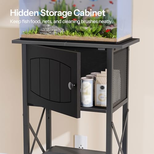 Ample Storage Space: Featuring a practical 3-tier design, this fish tank stand holds 5-10 gallon tanks with a middle cabinet for storing essentials such as fish food, nets, and water treatments. The side metal mesh panel promotes optimal ventilation within the cabinet
