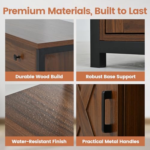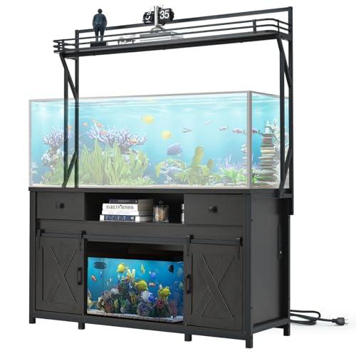 Sunable 120 Gallon Fish Tank Stand with Shelf & Power Outlets, Engineered for Safety to Reliably Hold 1200 lbs, Sliding Barn Doors, Accommodates a Range of 75-120 Gallon Aquariums, Dark Brown