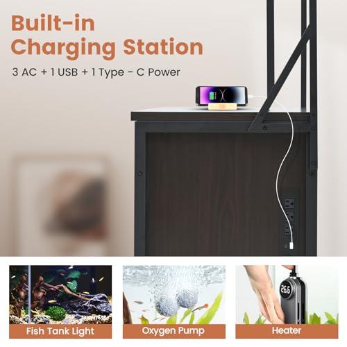 [Integrated Power Center]: Includes a multi-outlet socket for easy access to power all your devices, helping to organize cables and streamline electricity distribution for a cleaner aquarium environment.