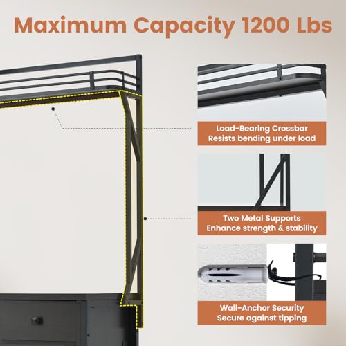 [Extra-Large Capacity]: Engineered with a reinforced metal frame, the 75–120 Gallon Aquarium Stand safely holds up to 1200 lbs, making it an ideal choice for multi-tank arrangements or spacious aquatic habitats.