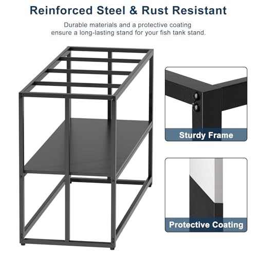 【Dual-Layer Functionality】 The stand’s two-layer design maximizes space efficiency. The upper layer is ideal for your primary aquarium, while the lower shelf can accommodate additional tanks or storage, making it versatile for various aquarium needs.