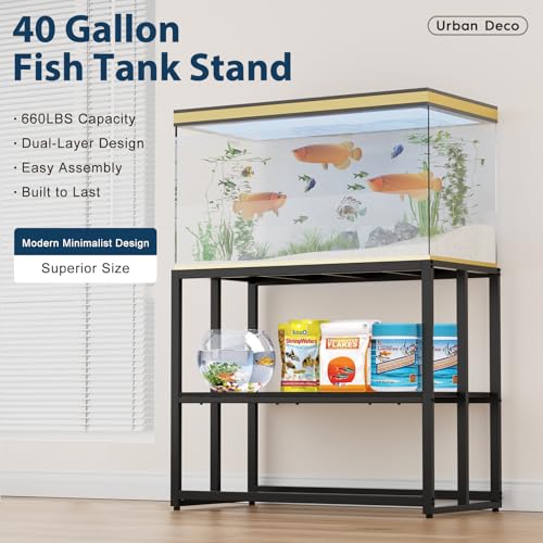 Urban Deco 40 Gallon Fish Tank Stand 660LBS Capacity For Aquarium Stand Metal Fish Tank Stand 38.2″x18.5″x29.5″ Dual-Layer Design Terrarium Stand Ideal for Home and Office