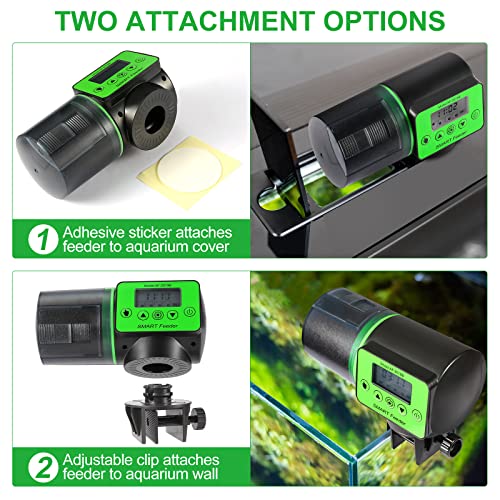🐠【Two Different Fixed Methods】- The Fish Food Dispenser has 2 install methods for you to choose. One is to fix the feeder to the tank wall by using the holder. Another is to paste the feeder with double-side sticker on the tank cover.