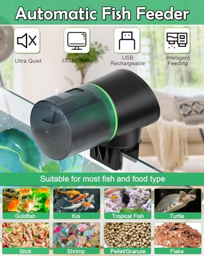 Fish Feeder for Vacation: Fits for 600L (158 US gallons / 131 UK gallons) fish tank, the feeder can perfectly feed goldfish and turtles on weekends or holidays