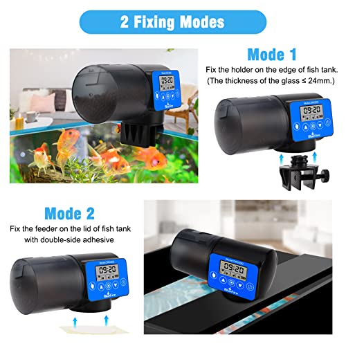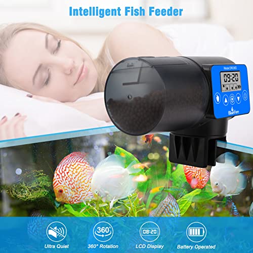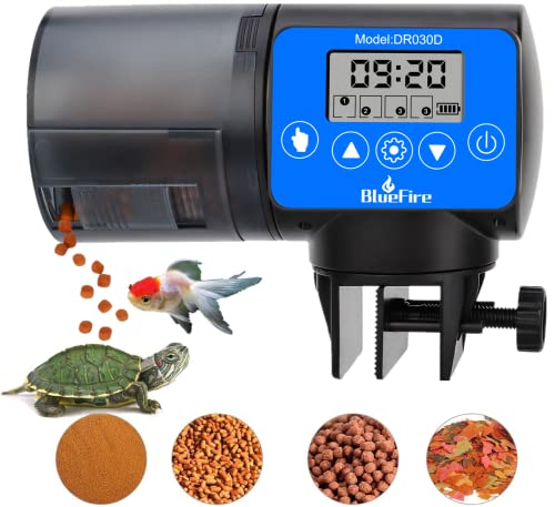 BlueFire Automatic Fish Feeder Timer Feeder for Fish Food Dispenser Moisture-Proof Auto Fish Feeder Turtle Feeder with LCD Display for Aquarium or Fish Tank(Blue)