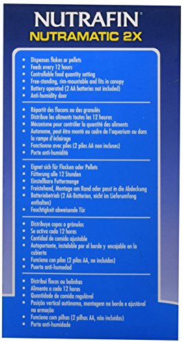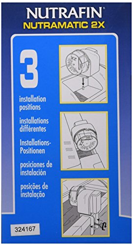The Nutrafin NutraMatic 2X Automatic Fish Feeder feeds every 12 hours. This battery powered fish feeder has an easily accessible food drum. The NutraMatic 2X can be installed in 3 different positions: free standing, rim mountable and fits into certain canopies. In addition, the amount of food dispensed from the drum can be adjusted and it accepts most varieties of dry foods. The NutraMatic 2X is ideal for vacations and busy schedules.