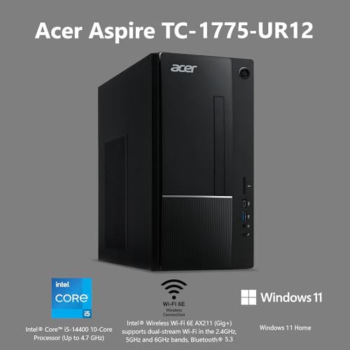 Do What You Do With Exceptional Performance. The Intel Core i5-14400 processor goes beyond performance to let your PC do even more at once. With 16 GB DDR5 memory and 512 GB PCIe Gen 4 SSD storage—the Aspire TC-1775 is made to do it all.