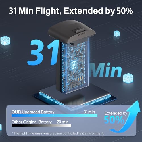 [ 31-Minute Flight Adventures ] This drone for adults delivers 31 minutes of flight time with its 2300mAh battery. Intelligent low-power alerts and built-in safety protections let you fly confidently while capturing more of your adventures