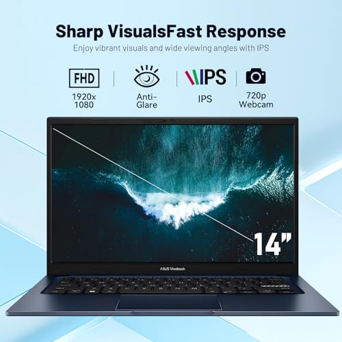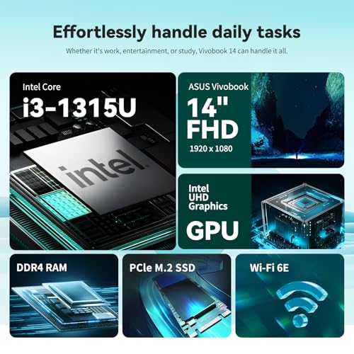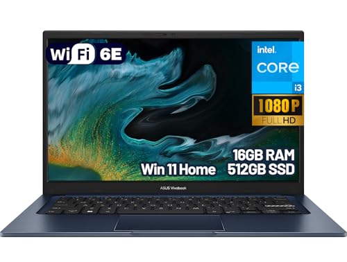 ASUS Vivobook 14″ Laptop for Buisiness and Students, Intel Core i3-1315U, 16GB RAM, 512GB SSD, NumberPad, Wi-Fi 6E, Quiet Blue, Windows 11 S Mode