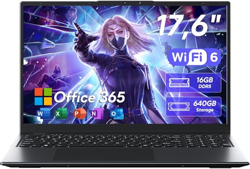 jumper 17.6 Inch Laptop Computer with Office 365, 16GB RAM 640GB Storage, N95 CPU, Windows 11, WiFi 6, Bluetooth 5.2, Backlit Keyboard, Portable Thin Business Student Laptops for Work, School, Travel