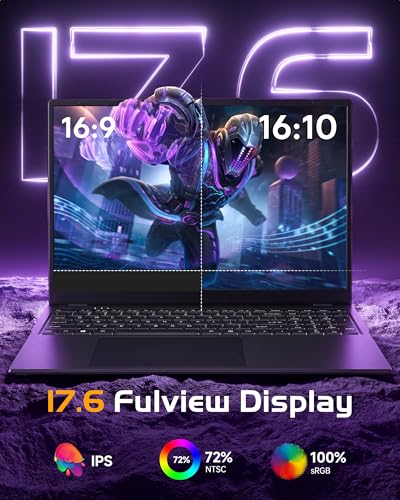 Immersive 17.6-Inch FHD Laptop Screen : Enjoy a stunning 17.6 inch FHD 1920×1200 16:10 display with 100% sRGB color, delivering clear details and vibrant colors. Perfect for school projects, business presentations, video streaming, and light gaming