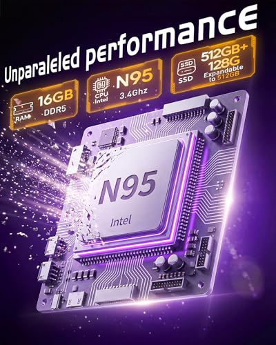 Powerful Performance : Equipped with an Intel N95 Processor (3.4GHz) and 16GB DDR5 RAM, this laptop ensures smooth multitasking for work and entertainment. It features 640GB storage (512GB SSD + 128GB eMMC), offering plenty of space for files and media