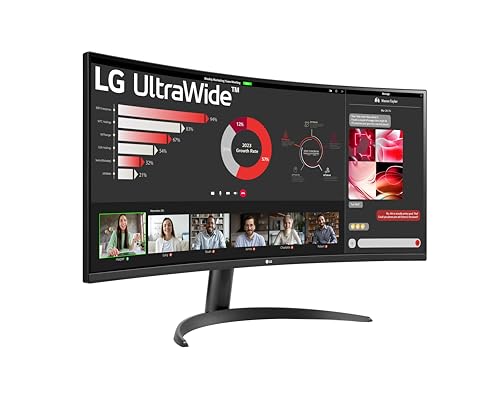 LG UltraWide Monitor (34WR50QK) – 34-inch 21:9 Curved UltraWide™ QHD (3440×1440) Display, sRGB 99%, HDR10, PBP, 100Hz Refresh Rate, Eye-Care Features, Ergonomic Design