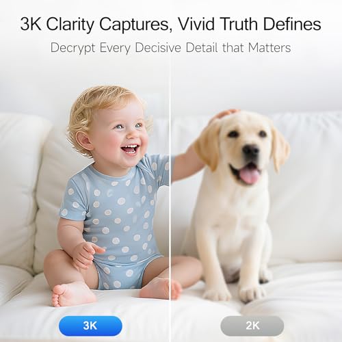 Baby Camera Monitor in True 3K UHD: Real 3K UHD (not upscaled fakes!) shows if the pacifier’s cleanor the cat’s plotting mischief. Night Vision 2.0 (no creepy red glow) protects your baby, cat, or dog’s sleep cycles. Mom verified: ‘Finally see who’s sneaking midnight snacks!’ ldeal for baby/pet monitoring with crystal clarity