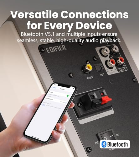 Edifier R1380DB Active Bluetooth Bookshelf Speakers – Optical/Coaxial Input – 2.0 Wireless Studio Monitor Speaker – 42W RMS – Wood Grain