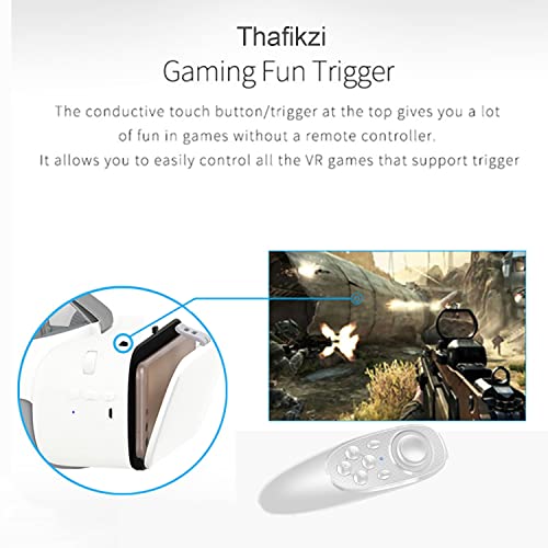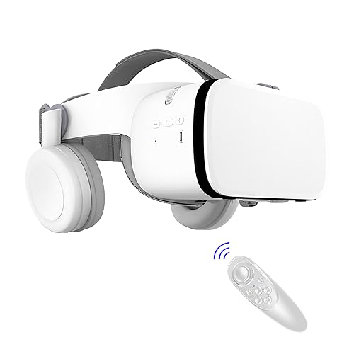 VR Headset for Phone, 3D VR Glasses with Bluetooth Headset and Remote Controller – Immersive Casque VR Headset for iPhone/Android Phones (White)