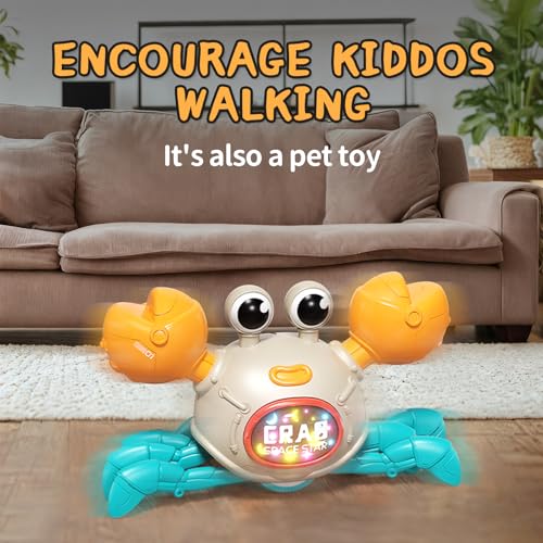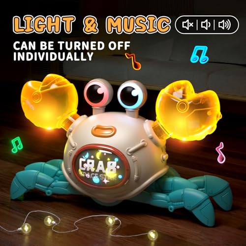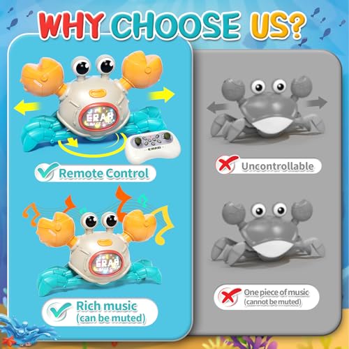 Remote Control Crawling Crab Baby Toy, Dancing Crab with Light & Music, Infant Tummy Time Toys 3 4 5 6 7 8 9 10 11 12 Months Old for Babies, Learning Crawl Walking Toddler Gifts for Boys Girls